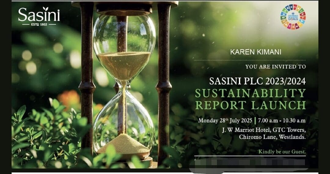 Karen Kimani has been invited to speak as a panelist at the launch of Sasini’s 2024 Sustainability Report, scheduled for Monday, 28th July 2025 from 7.00am - 10.30am at The JW Marriott Hotel, GTC Towers, Chiromo Lane, Westlands, Nairobi.
